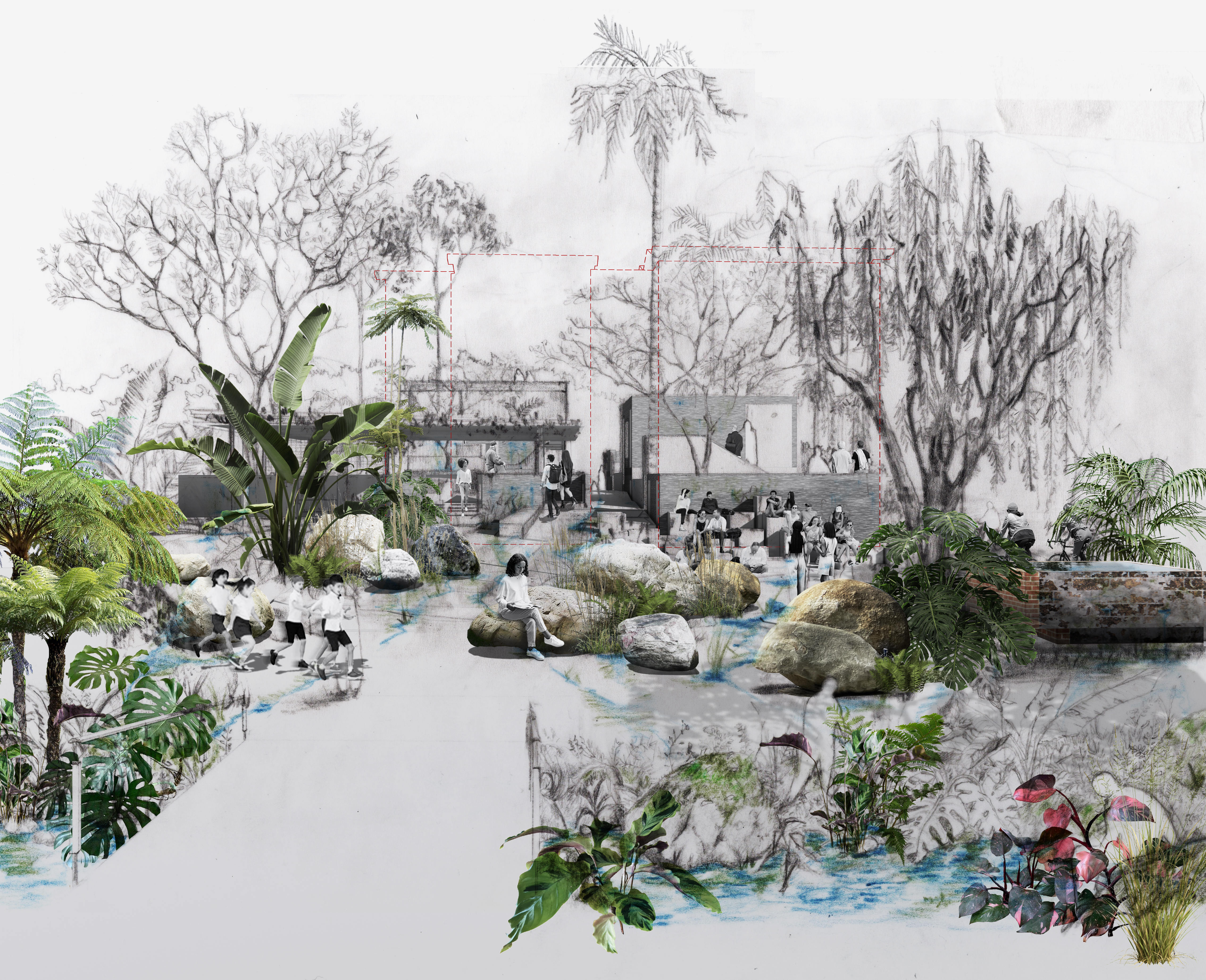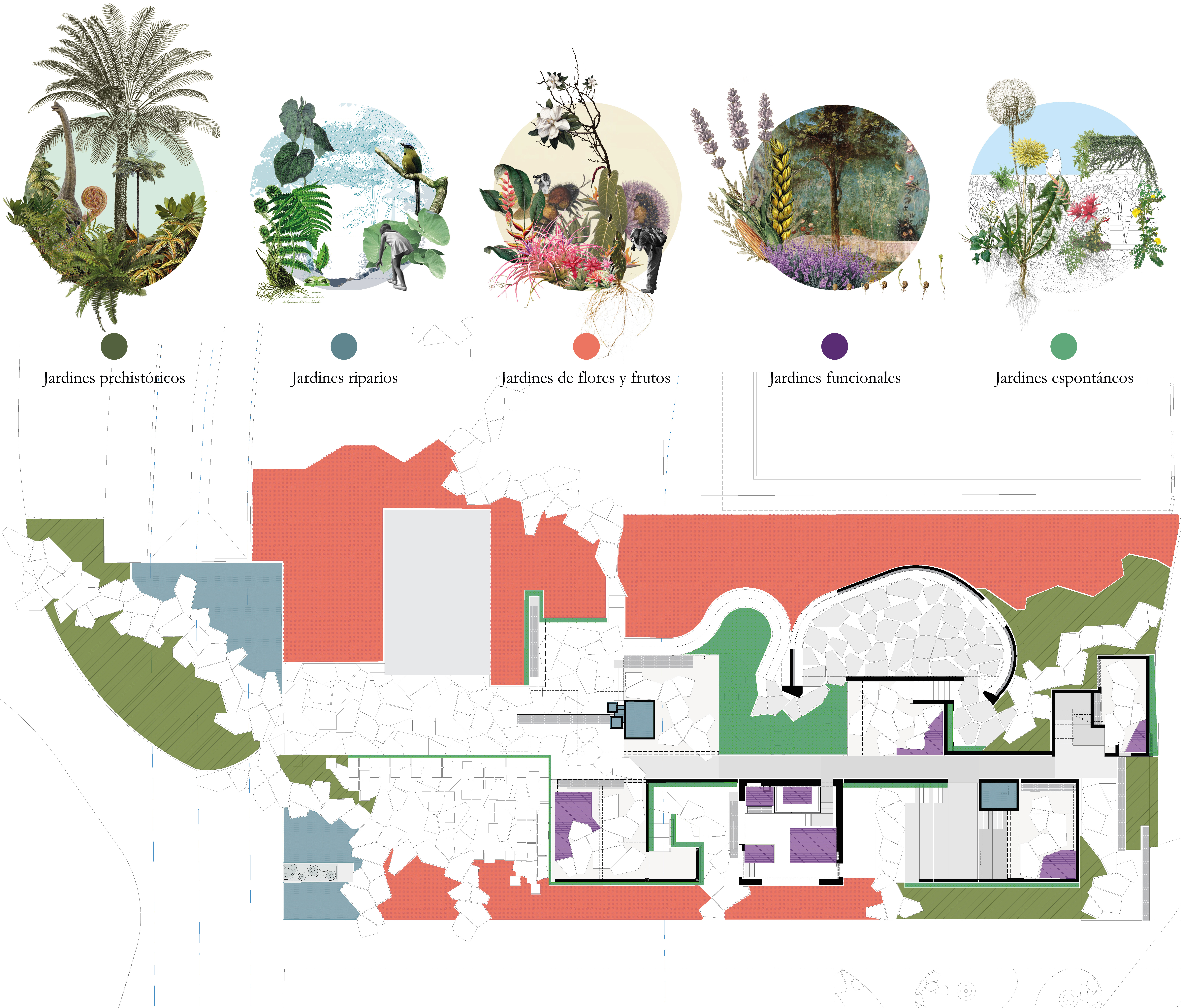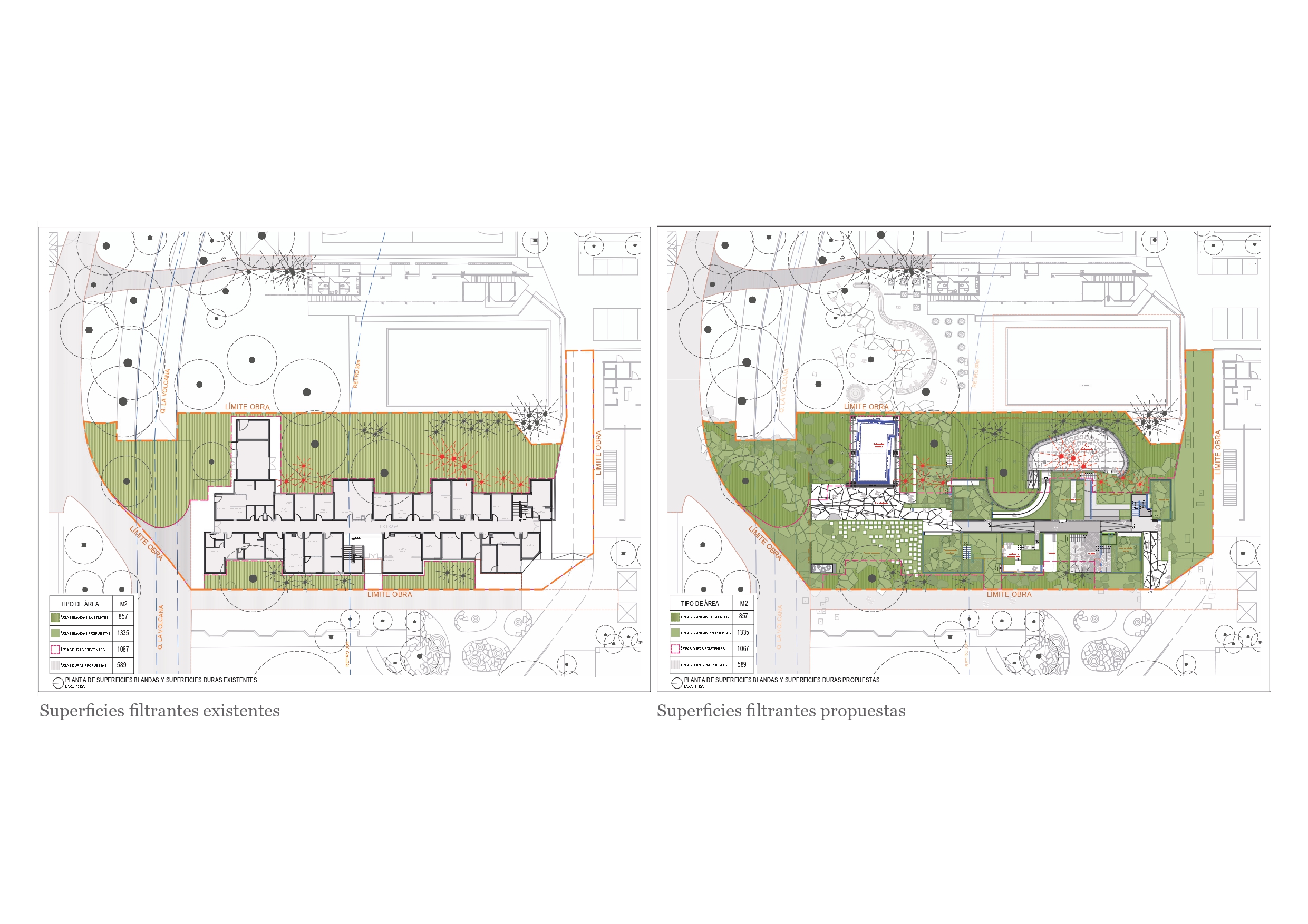 La reconfiguración de materiales, que una vez fueron pisos y muros, en materia prima secundaria, permitirá la conformación de terrazas de infiltración, facilitando el encuentro del agua con el suelo.