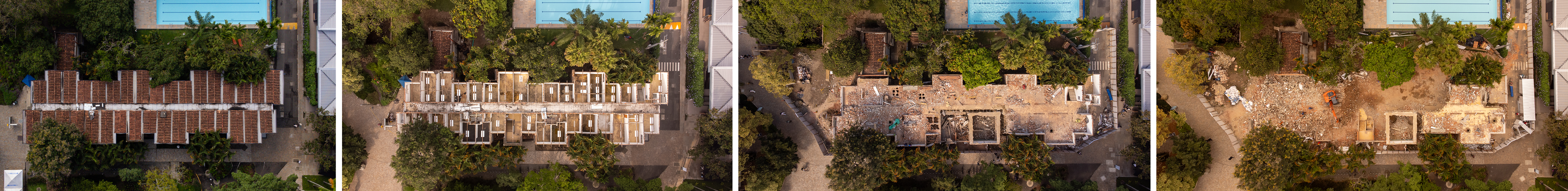 Los ladrillos, maderas, tejas, vigas y losas fueron desmontados y liberados de su función original, se transportaron y agruparon para posteriormente ser reutilizados.